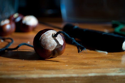 Понадобится: каштаны(около 10 штук) и веревочка.