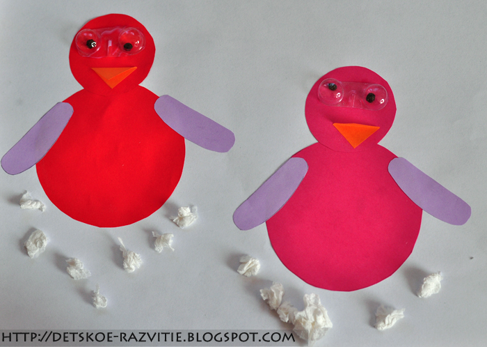 Вот таких упитанных птиц мы сделали. Не хватает только глаз.