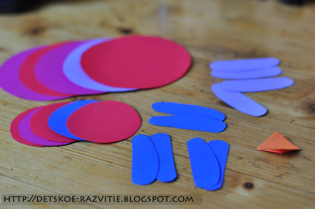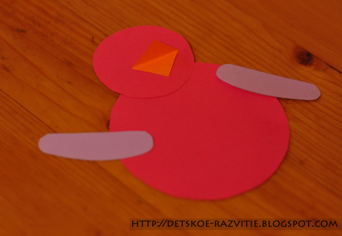 Ну а ещё мы подготовили квадратики, чтобы сделать птичкам клюв.