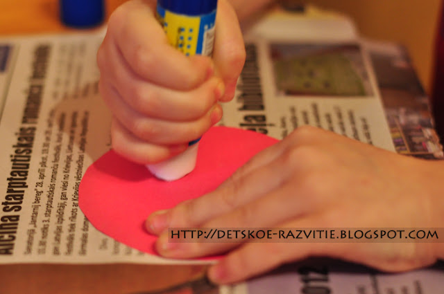 Ну и осталось птичек покормить. Для этого мы нарвали салфетки на мелкие кусочки, скомкали и приклеили.