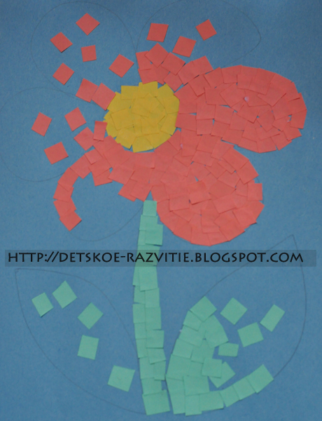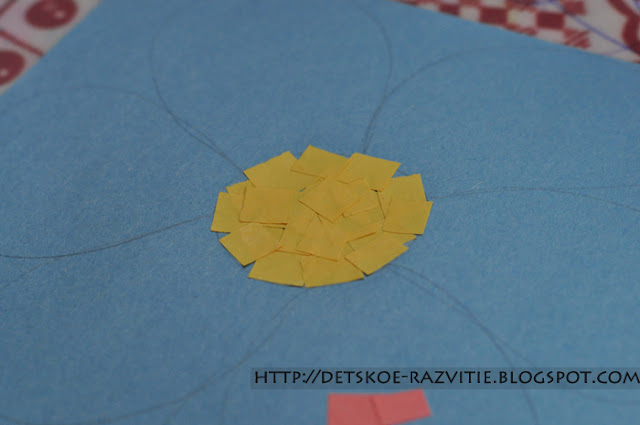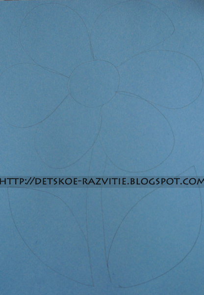 Понадобится ещё один лист бумаги, на который мы будем всё клеить. Нарисуйте будущую картину, к примеру, цветок.
