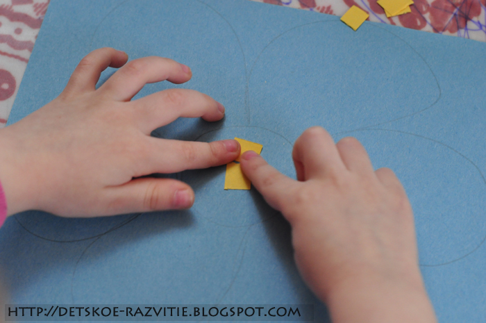Покажите ребенку какие зоны каким цветом нужно заклеивать и вперед. Начать лучше с самого маленького кусочка, чтобы быстрее увидеть первые результаты, это вдохновляет.