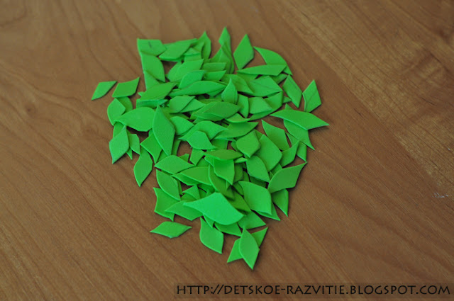 Для начала, как всегда, подготовка. Нужно нарезать "листики" для дерева и нарисовать голые ветки.