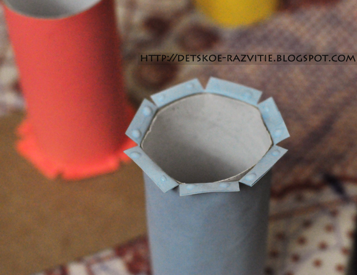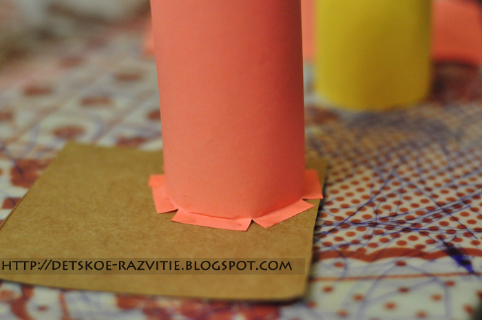 Понадобится: рулоны от туалетной бумаги, цветная бумага, клей и просто плотный картон