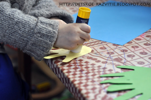 Я отметила, что возраст подойдет любой, разница лишь в том, насколько вы будете ребенку помогать. Самые маленькие могут просто дать обвести свои ладошки, а самые большие сделать всю поделку самостоятельно.