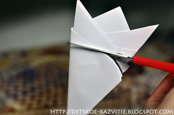 7. Аккуратно разворачиваем и снежинка с 5 лучами готова!