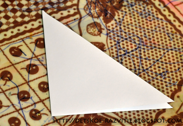 Складываем треугольник пополам.