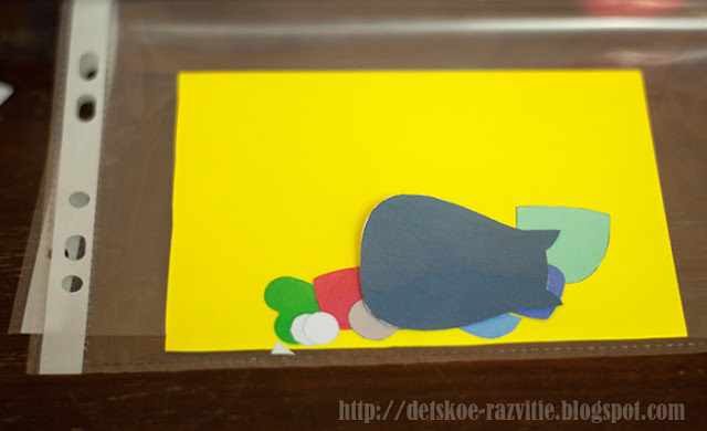 Чтобы ребенку не приходилось долго ждать, я готовлю материалы заранее, чаще всего вечером. Раскладываю всё по кучкам и каждую кучку в файл. И к моменту занятий, мне остается только достать нужный файл и клей.