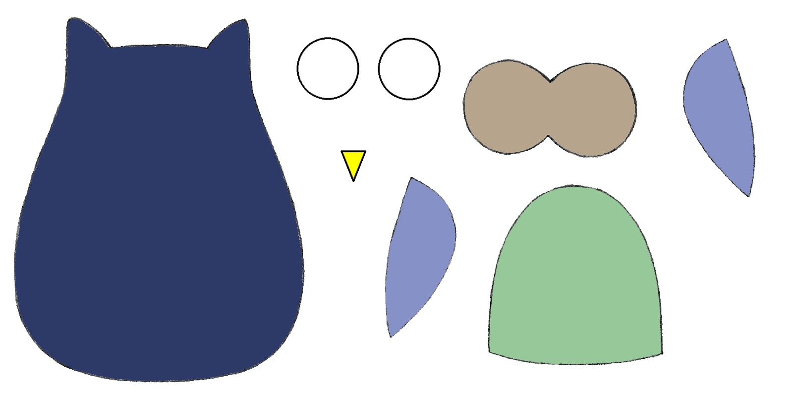 Обратите внимание, у шаблона "пустые" глаза. Я сделала так, чтобы можно было самим нарисовать взгляд в нужную сторону. Или наклеить готовые объемные глаза.