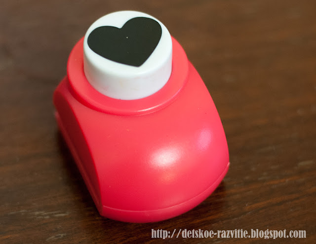 3. Помимо совы, мы ещё налепили всюду сердечек, День Святого Валентина, как никак. Сделали их с помощью фигурного дырокола и цветной бумаги.