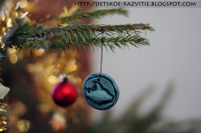 В качестве материала мы выбрали солёное тесто. Его легко приготовить в домашних условиях, требует минимум затрат и его легко высушить для долгого использования на ёлке.